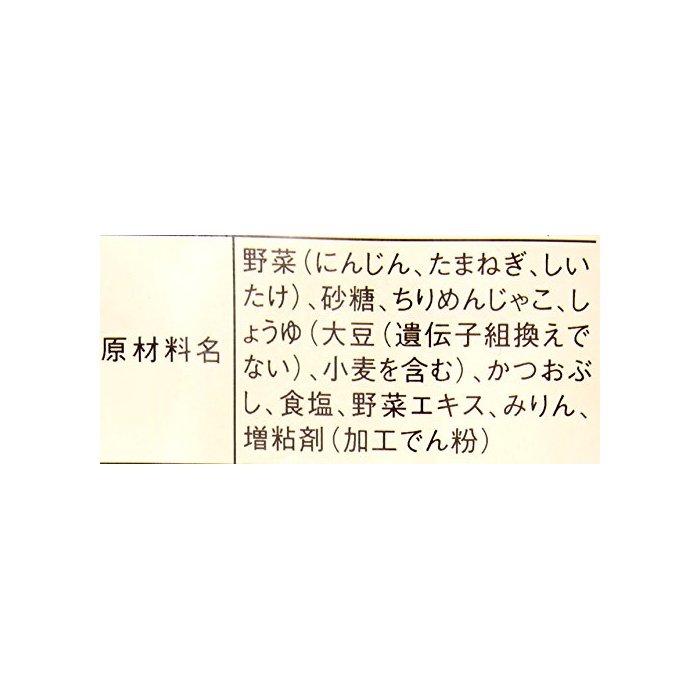원재료:야채((당근)인삼,타마 파,하여 있어 뛰어나다)고, 설탕,치리멘(견직물의는 오고, 간장(대두(유전자조 교환이 아니다)고, 밀을 포함한다)고, 또한 # 하고, 식염,야채 엑기스,미림,증점제(가공 나오지 않겠 분)