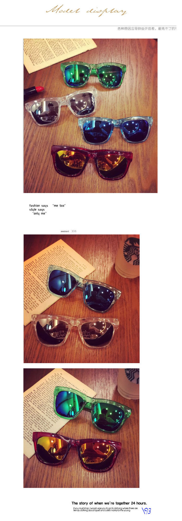 color 11?Transparent red mercury (sent glasses bag) color 12??Transparent green mercury (sent glasses bag) color 13 ?Black-rimmed black film color14 ?Silver frame white mercury color 15?Gold-framed mercury color 16 ?Gold frame green mercury color 17?Gold frame red mercury color 18?Gold-framed multicolored tablets color 19 ??Gold Box Gold Mercury