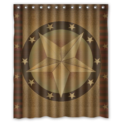 Stylish Living Elegant Western Texas Star Bathroom Shower Curtain (60" x 72" ) for Home / Traval / Hotel with Hooks