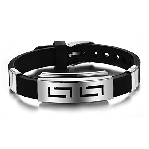 -. Title : [シュガーレス] ホピ 族 インディアンシルバーカラー ステンレス スチール ブラック シリコン ブレスレット ユニセックス P1144
