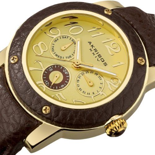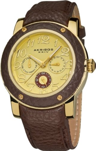 -. Title : Akribos XXIV Women's AK560BR Quartz Multi-Function Genuine Leather Watch