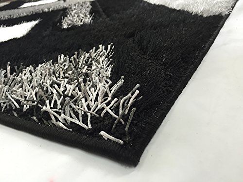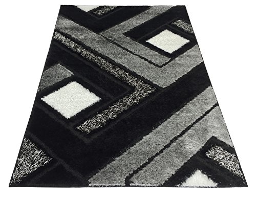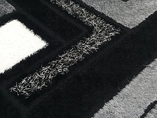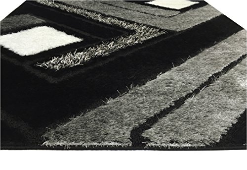 - Feature : Machine woven in Turkey, synthetic(polyester) area rugs with 1.18 inch (30mm) pile height, cut and loop style in high knot count polyester quality with modern designs in four-colorways at the most competitive prices. / Contemporary Modern Design : Geometric | Color : Grey Black White / Gray Black White Polyester Shaggy Shag with natural jute backing / Modern look | Vibrant colorfast and shimmering colors | Stain resistant | Anti-static | Moth proof | Easy to Clean / Approx Measures : W 53 inch by L 79 inch