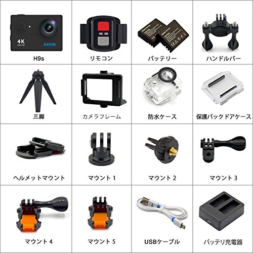 원본상품명:EKEN H9s アクションカメラ 4K「メ?カ?直販/1年保?付」 LIVE?? 2インチ液晶?面1200万?素 30M防水 170度?角 WiFi搭載 25fps?? ル?プ?? 1050mAh電