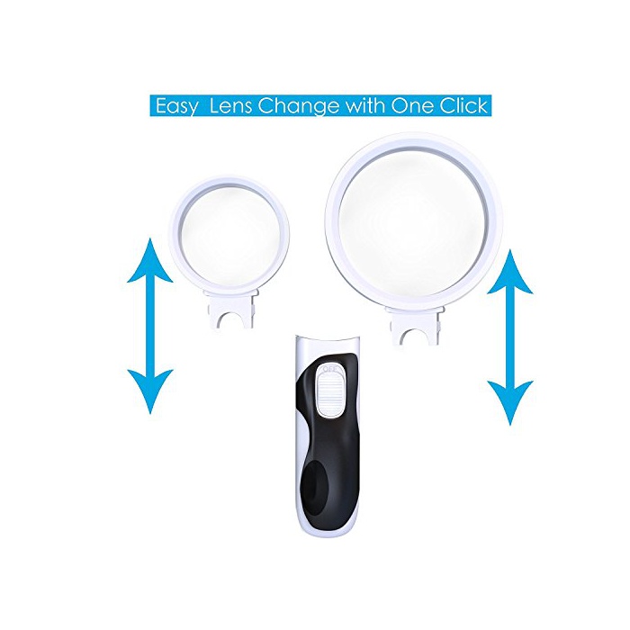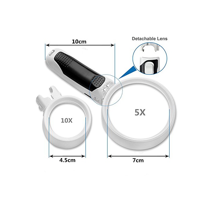 LANGOO 최신판 소지 확대경 루페 LED라이트부 돋보기 독서 루페배율5배 10배 렌즈 교환 가능 돋보기