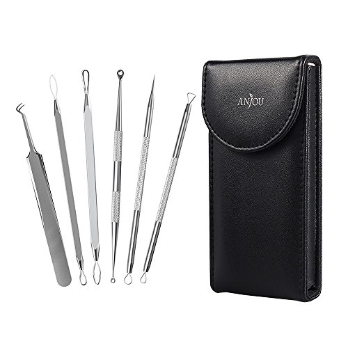 Anjou Blackhead Remover Tool Curved Blackhead Tweezers Kit 6-in-1 Professional Pimple Comedone Extractor Tool Set
