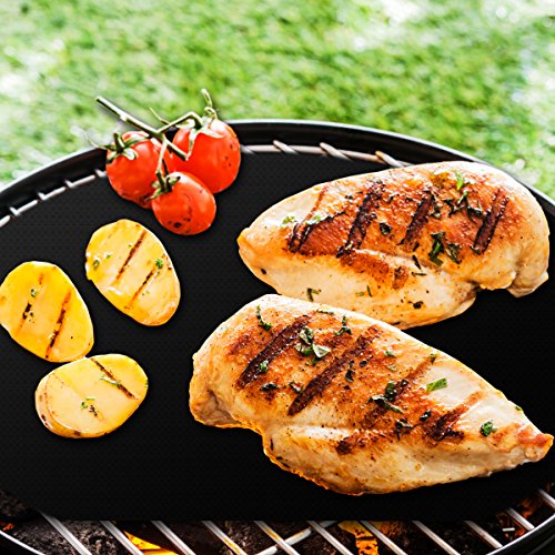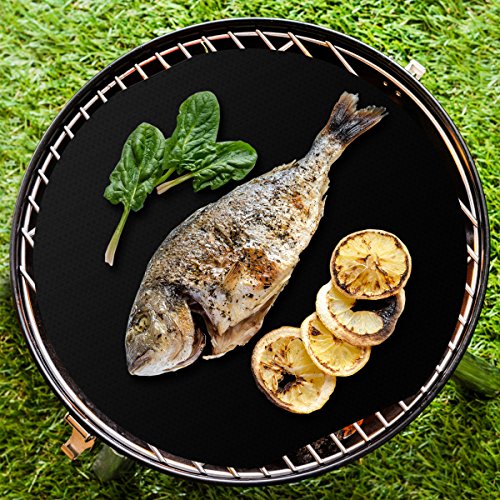 - Feature : COMMERCIAL GRADE non-stick cooking mats MAKE ANY GRILL SURFACE NON-STICK and eliminate messy clean up. Perfect gift idea! / THOUSANDS OF SATISFIED CUSTOMERS use these barbecue grill mats to prevent food from falling through the grill. Ideal for fish, vegetables, PIZZA, bacon and more! Grill with ease and leave perfect grill marks every time! / FDA TESTED AND APPROVED so it's safe for your family - Pack contains a set of 2 extra thick (0.2mm) heat-resistant technologically advanced PPTE materials from DUPONT. Each of these "miracle" mats measure 15.75" x 13". / More than 1,000 USES PER SIDE and dishwasher proof. Can be trimmed with scissors for a custom fit with any grill. / 5-year SATISFACTION GUARANTEE so you can buy with 100% CONFIDENCE!