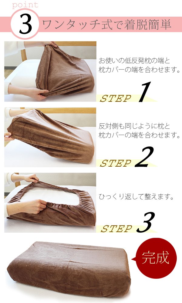Easy to remove One touch type (perfect for low resilient pillows such as Tempur)