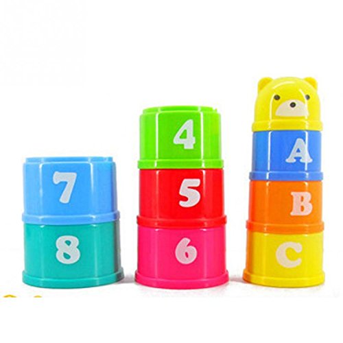(CCNN Toys)/Learning Education/Early Development Toys/DIRECT FROM USA/9pcs/lot Reborn baby multicolor building block Figures Letters Folding Cup Pagoda Kids toy for ...
