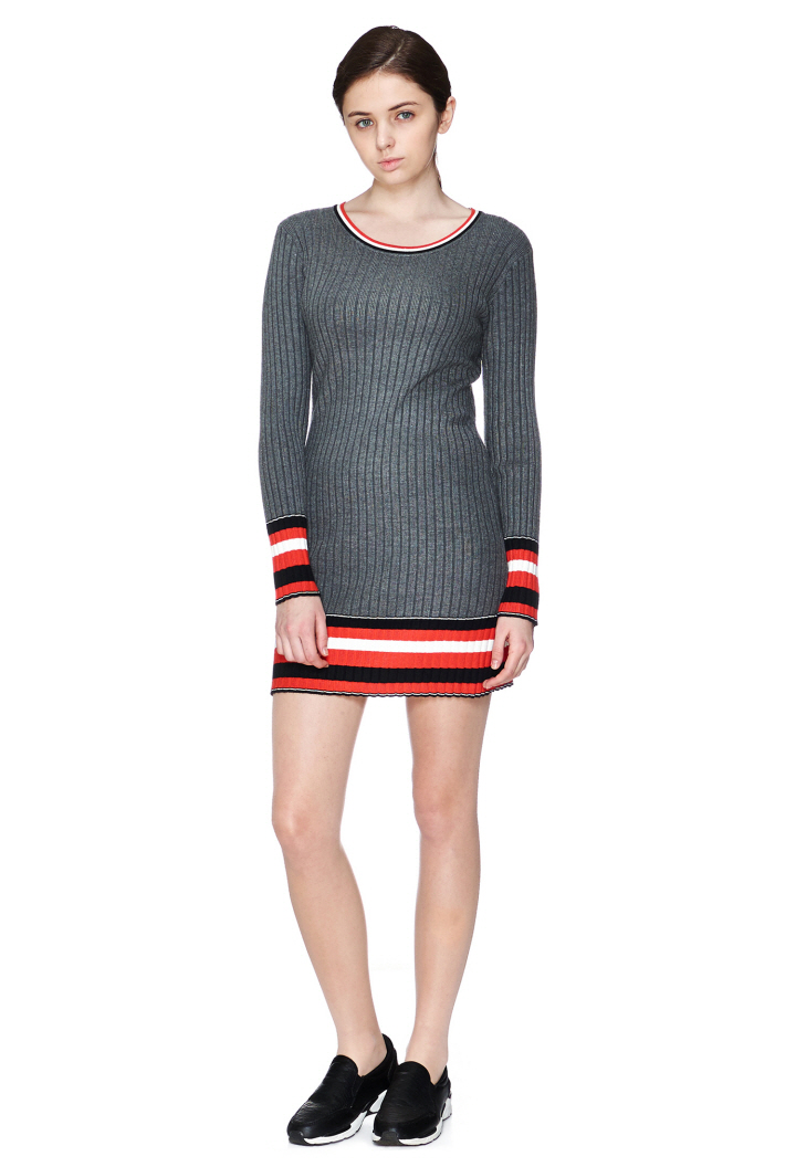 슬림한 실루엣이 돋보이는 니트 원피스입니다