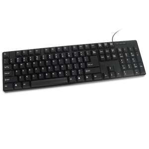 Standard USB wired keyboard. This keyboard is made to function with any computer, laptop, or netbook that has an open USB port. It has laser etched lettering on the keys to resist fading, and is made with moisture resistant plastic material. This is a generic basic keyboard for home and office use.