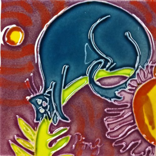 Continental Art Center SD-109 4 by 4-Inch Purple Cartoon Cat Ceramic Art Tile