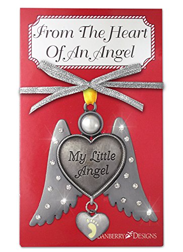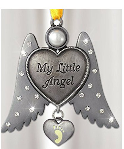 Jeweled Angel Ornament with Hanging Baby Footprint Heart Shaped Charm - My Little Angel - Newborn Baby Gift - Pewter Metal 3 Inch