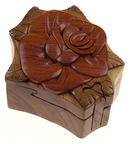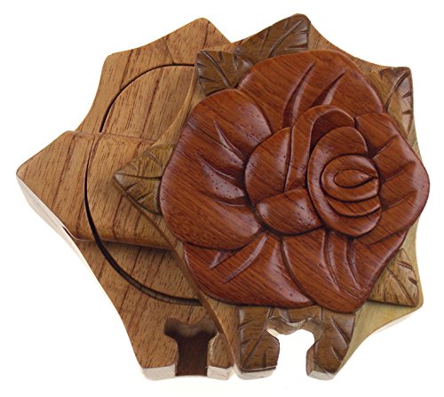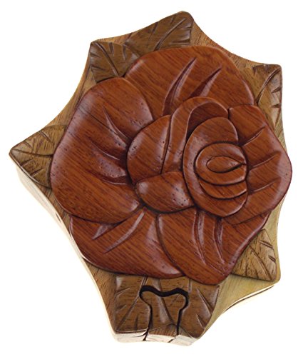 Studio : Hickoryville Publisher : Hickoryville Binding : Kitchen Product Description Handmade carved Rose II intarsia wood puzzle box bundled with Hickoryville instructions on opening and closing the puzzle box. This secret puzzle box is a beautifully handcrafted creation, high quality workmanship, made of natural wood. The box is a puzzle that comes apart into four pieces and discovers a secret space to keep special treasures. Inside storage space is approximately 2 inches long x 2.7 inches wide. Every box is a unique, handcrafted creation and yours may vary slightly from the photos. 0