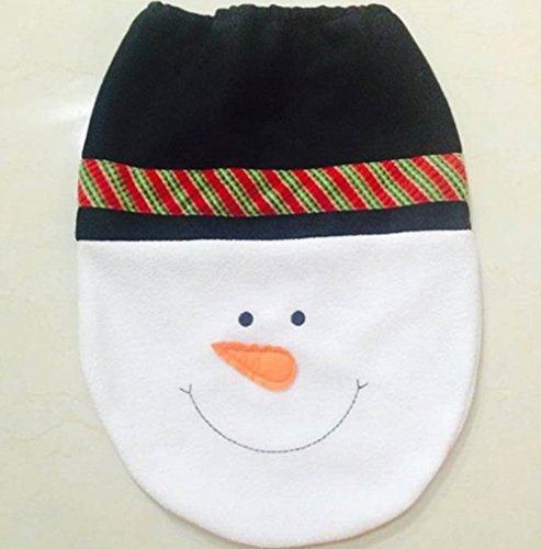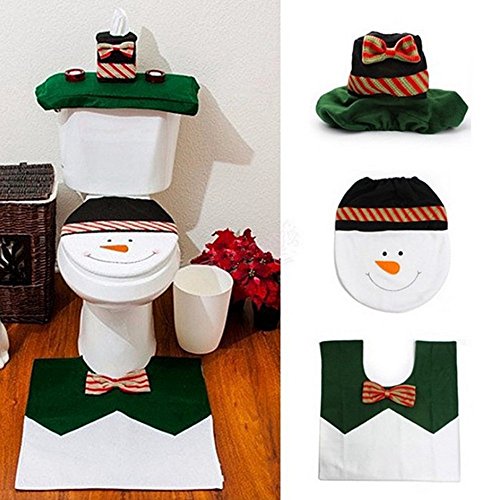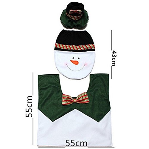 Carcarely Christmas Decorations Santa Claus Elf Snowman Reindeer Toilet Seat Cover Bathroom Mat and Rug Set 3PC (G-Green Snowman2)