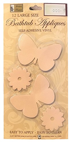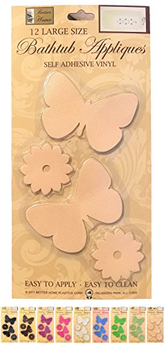 Product Description Fun Butterfly Shaped Bathtub Appliques Safety Treads for the bathtub Package includes: 6 butterfly and 6 small flowers, Butterflys measure approximately 3 1/2 inches wide x 2 1/2 inches tall, Small flowers are almost 2 inches round. 0