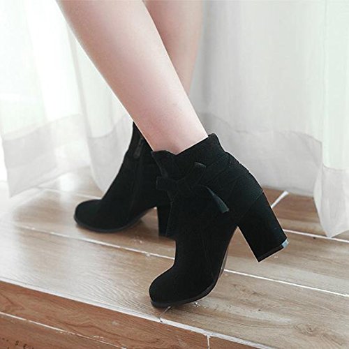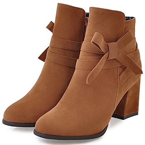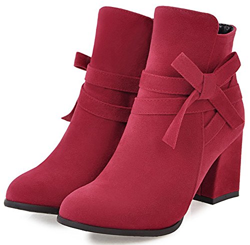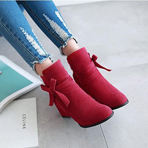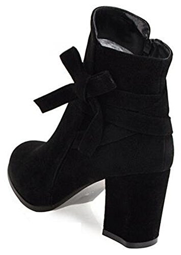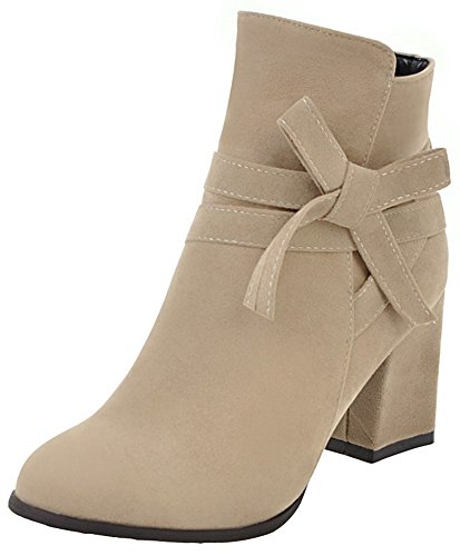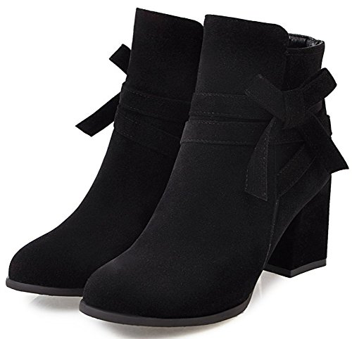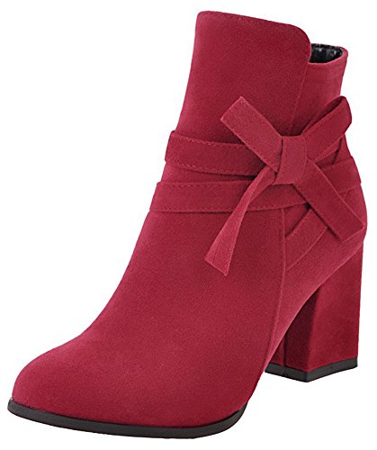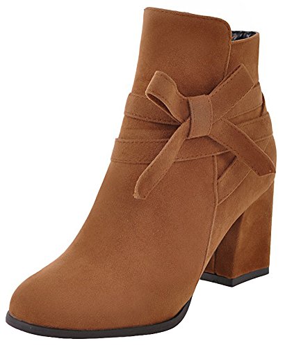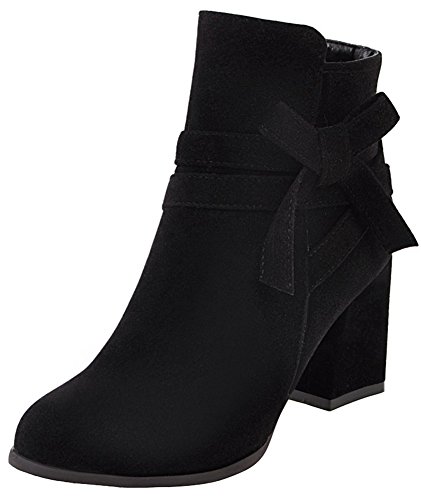 (Mofri)/Women's/Boots/DIRECT FROM USA/Mofri Women's Sweet Faux Suede Bowknot Strap Side Zipper Ankle Booties Round Toe Chunky High He...