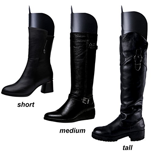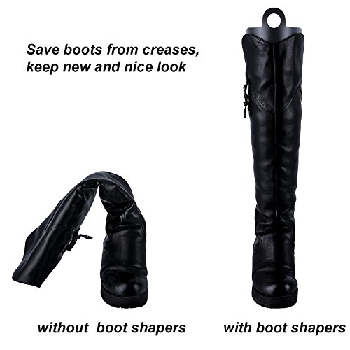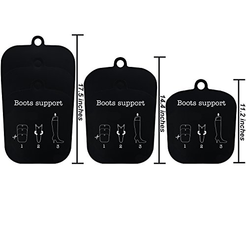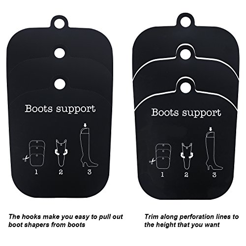About product: Function: fit various boots, organize and protect your boots, save boots from creases, keep new and nice look of your boots, make your closet look much neater and nicer, keep your boots upright for better ventilation, great tool to display boots in nice shape in shop etc. Specifications: Boot shapers size: The height is 17.5", 14.4", 11.2" for tall, medium, short boot shapers with hook part. Material: Plastic Quantity: 4 Pairs (8 Sheets) Package includes: 8 x Boot shapers 0