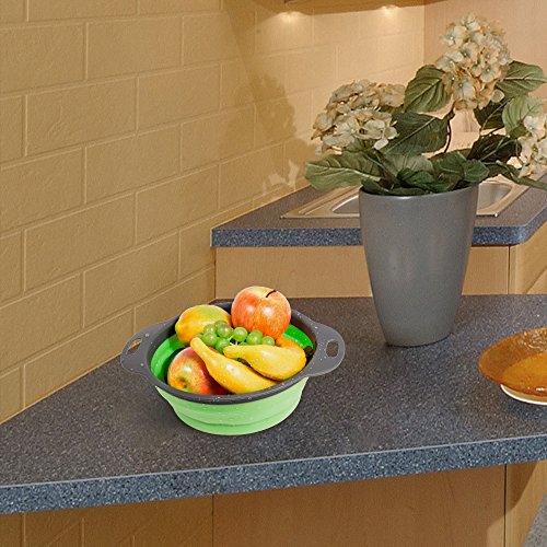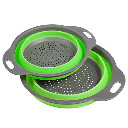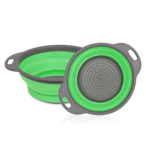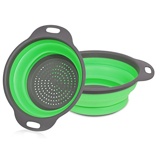 BEW Set of 2 Kitchen Collapsible Colanders Strainer, Green