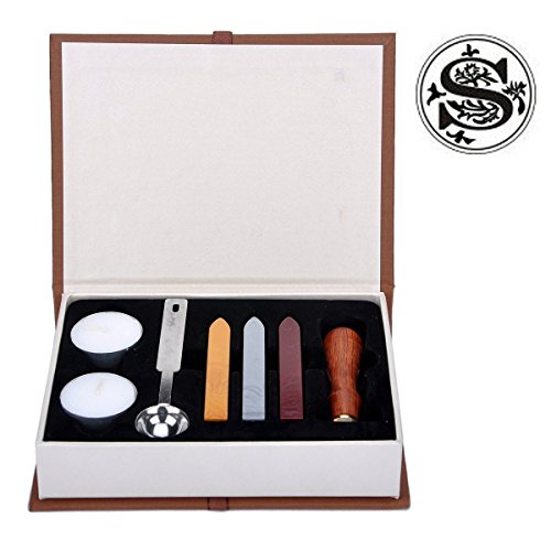 Package: 1 premium stamp letter S + 3 sealing wax sticks + 1 spoon for melting + 2 tea light candles