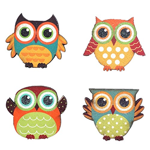 Wood Refrigerator Magnetic Owl Display set of 4