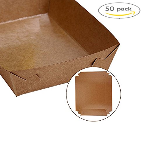 🍗 Paper Food Tray Dimensions: each tray measures 5.1" wide x 7.1" long x 1.6" tall. 50 pieces per package.The tray made by great and safety non-toxic disposable paper for food, and the natural Kraft paper can be recycled.