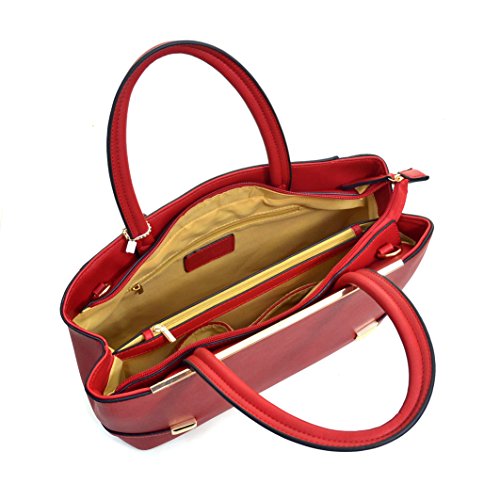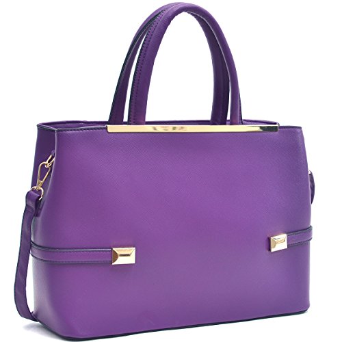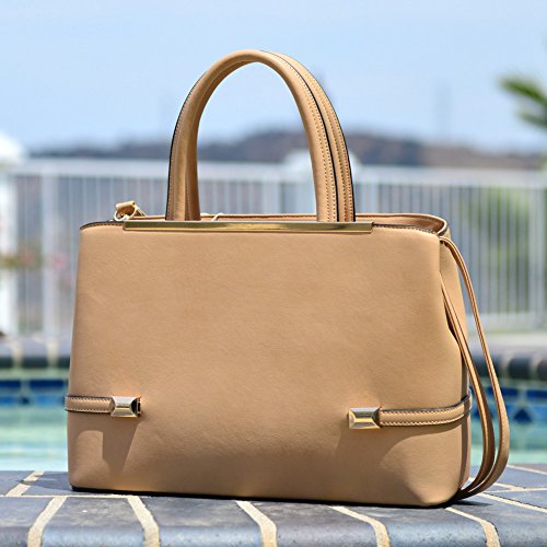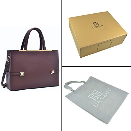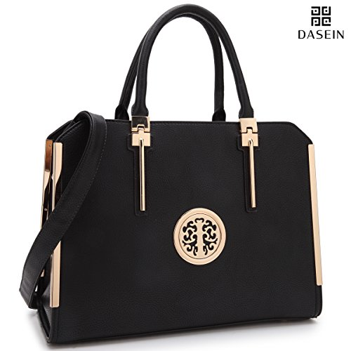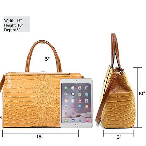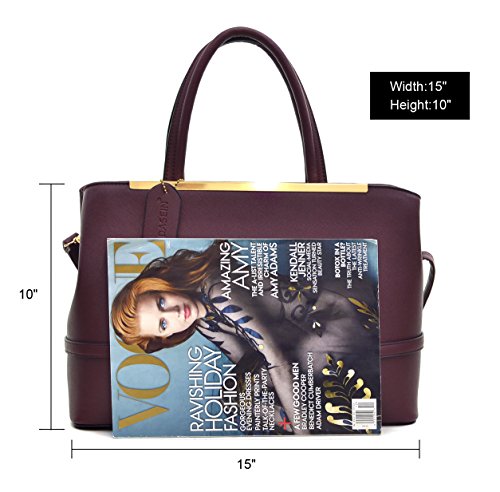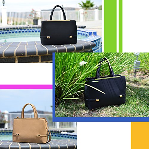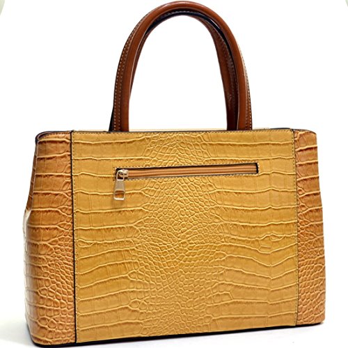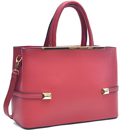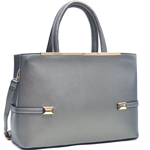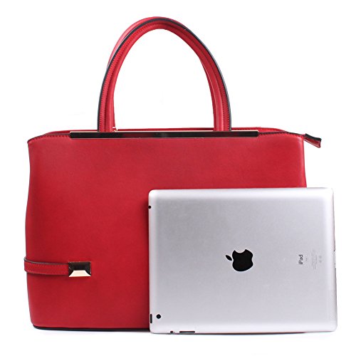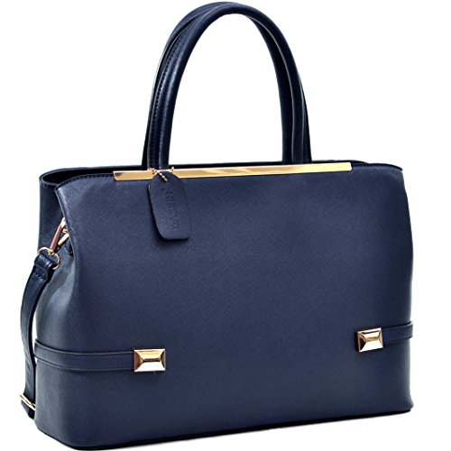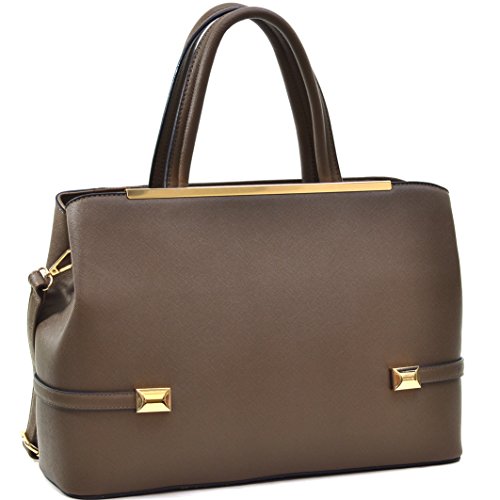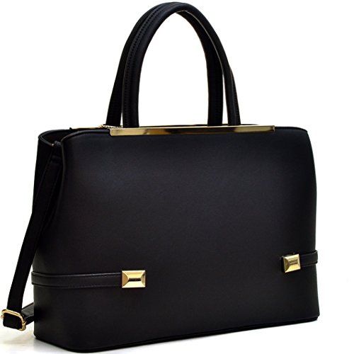| Dasein Gold Tone Faux Leather Frame Satchel Tote Shoulder Handbag Purse Tablet, iPad Bag |