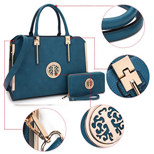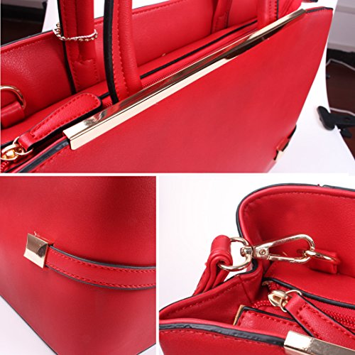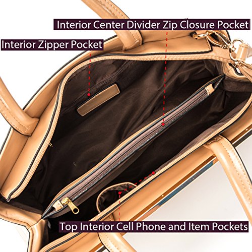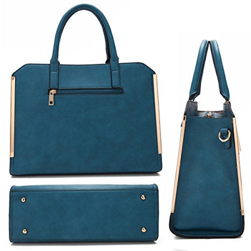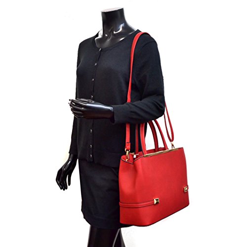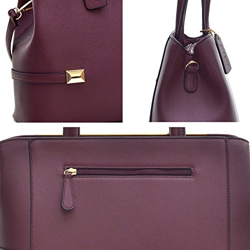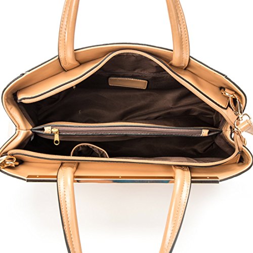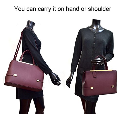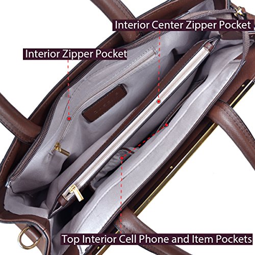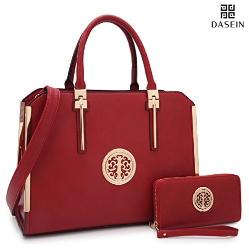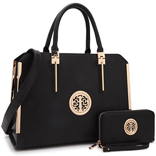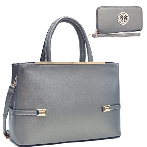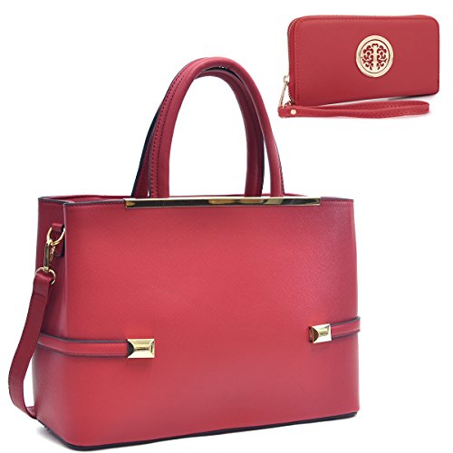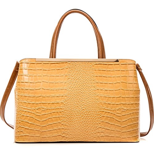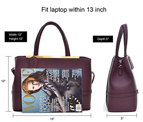 | Dasein Gold Tone Faux Leather Frame Satchel Tote Shoulder Handbag Purse Tablet, iPad Bag |