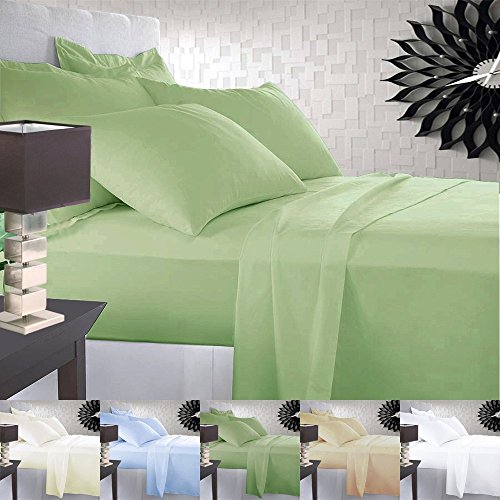 Casual Elegance 100% Cotton Sateen 400TC Solid 4 Piece Sheet Set - Queen/King (King, Sage)