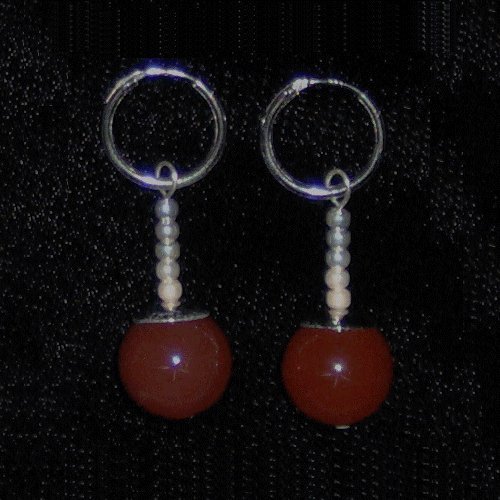 -. Feature : Two 3/8 inch or 12mm Sterling Silver hinged ear hoops / 5 Sterling Silver 1/8 inch or 3mm beads per earring / Two 3/8 inch or 12mm Red Agate beads / Earring length is 1 1/2 inches / Hand-crafted from all natural materials