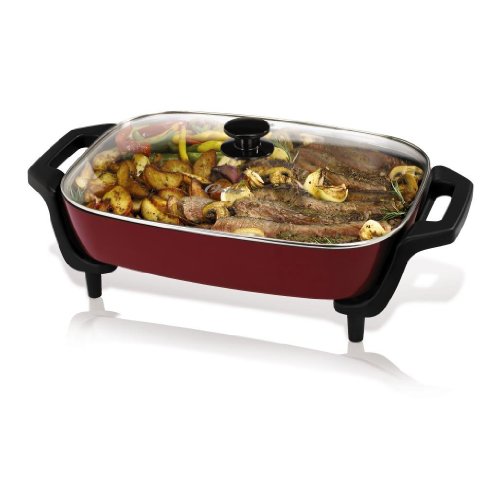 - Feature : 12 by 16 inch nonstick coated cooking surface / Removable, adjustable temperature control / Cool touch handles / Dishwasher-safe components / Red color for entertaining / 12-inch by 16-inch nonstick coated cooking surface / Dishwasher safe components