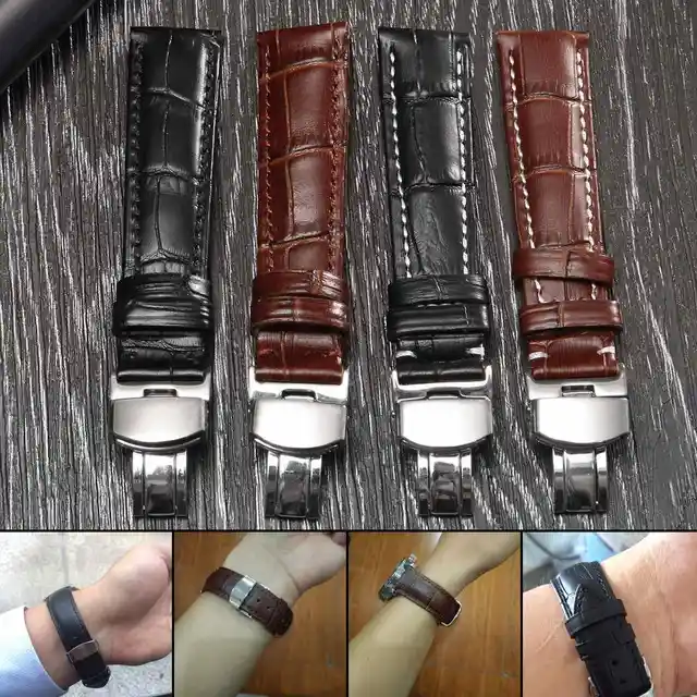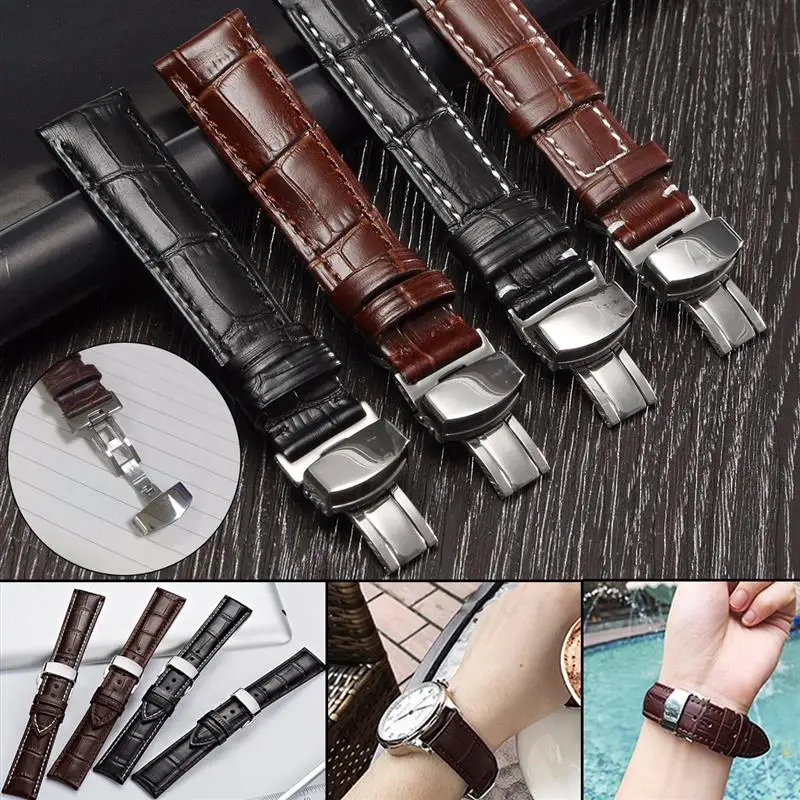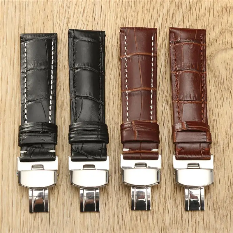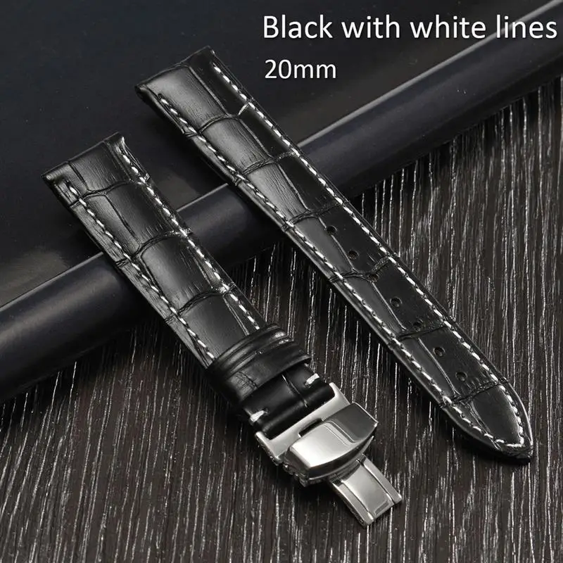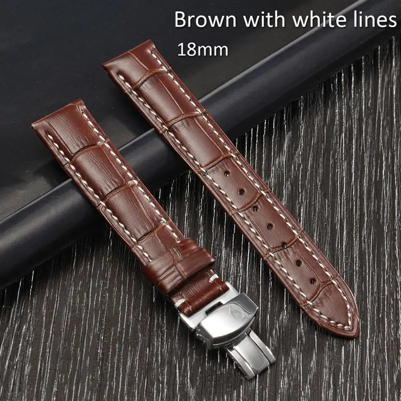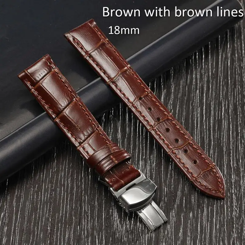 | [해외] 정품 가죽 손목 스트랩 butterfly 걸쇠 버클 밴드 디플로 브라운 블랙 시계 팔찌 18 20 22 미리메터/tissot |
