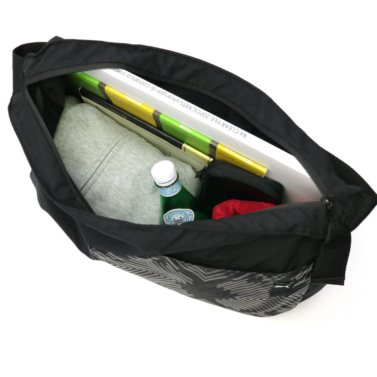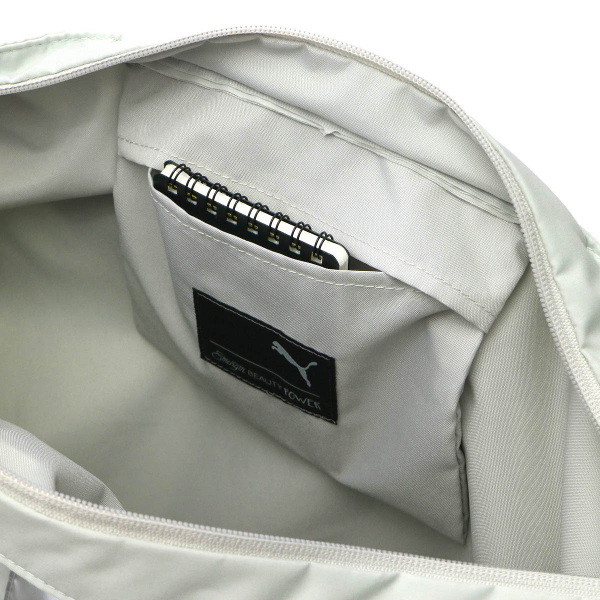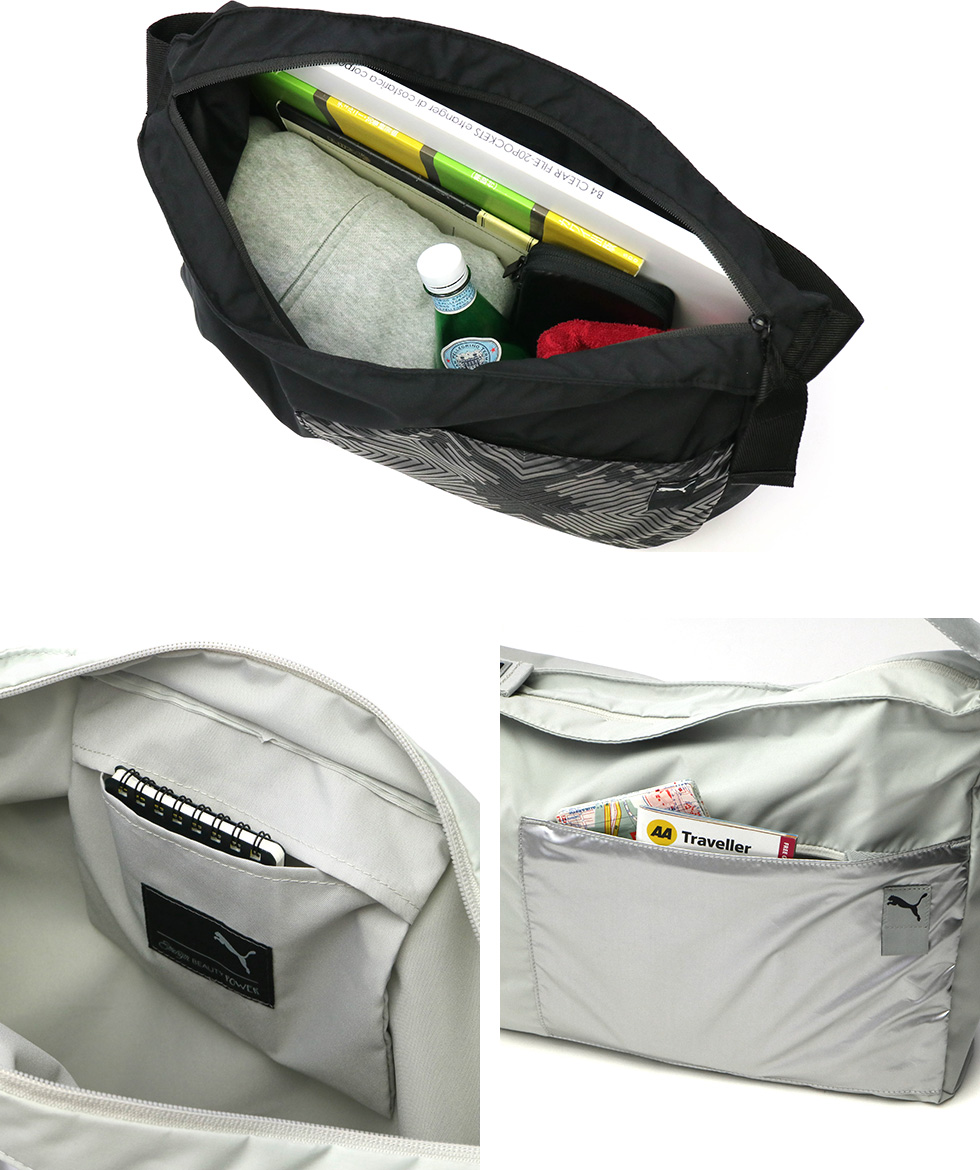 メイン収納部は大きく開き視認性に優れています。内部は小分けに便利なポケットを1か所装備したシンプルで広々としたつくり。普段使いはもちろん、様々なスポーツシーンやジム通いなどに最適です。また、外側には使用頻度の高いものを収納するのに便利なポケットを装備しています。