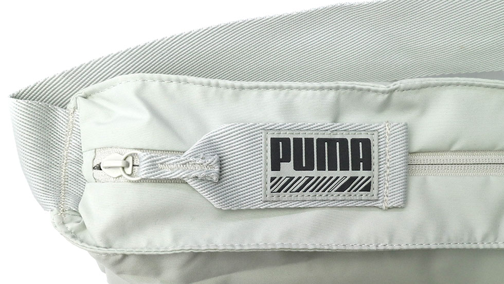 メイン収納部のジッパーの引き手はビッグサイズのウェビングテープをプラス。大きくて引っ張りやすいうえにデザインのアクセントにもなっています。