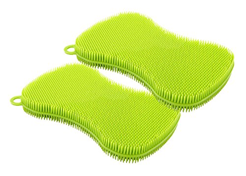 iWeller 2 Piece Silicone Sponge Multipurpose Scrubber for Kitchen, Brush Pot Pan Dish Bowl, Wash Fruit and Vegetable, Pot Holder