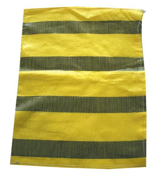 黄色と黒色のストライプ柄の、危険箇所の表示を助ける土のう袋です。