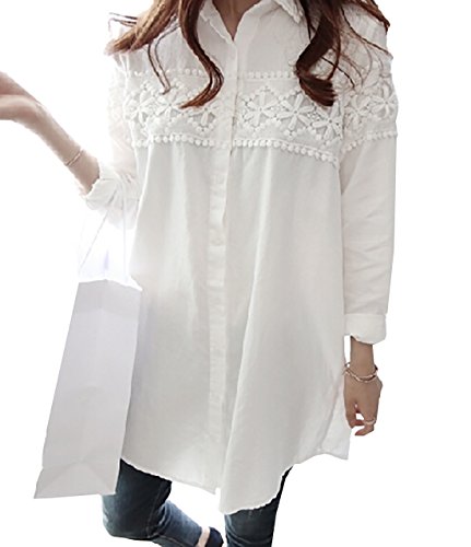 -. Title : ELPIS レディース ロングシャツ オーバーブラウス シャツ ブラウス フラワー レース デザイン ロング丈 長袖 ゆったり 大きめ M L XL XXL 全2色