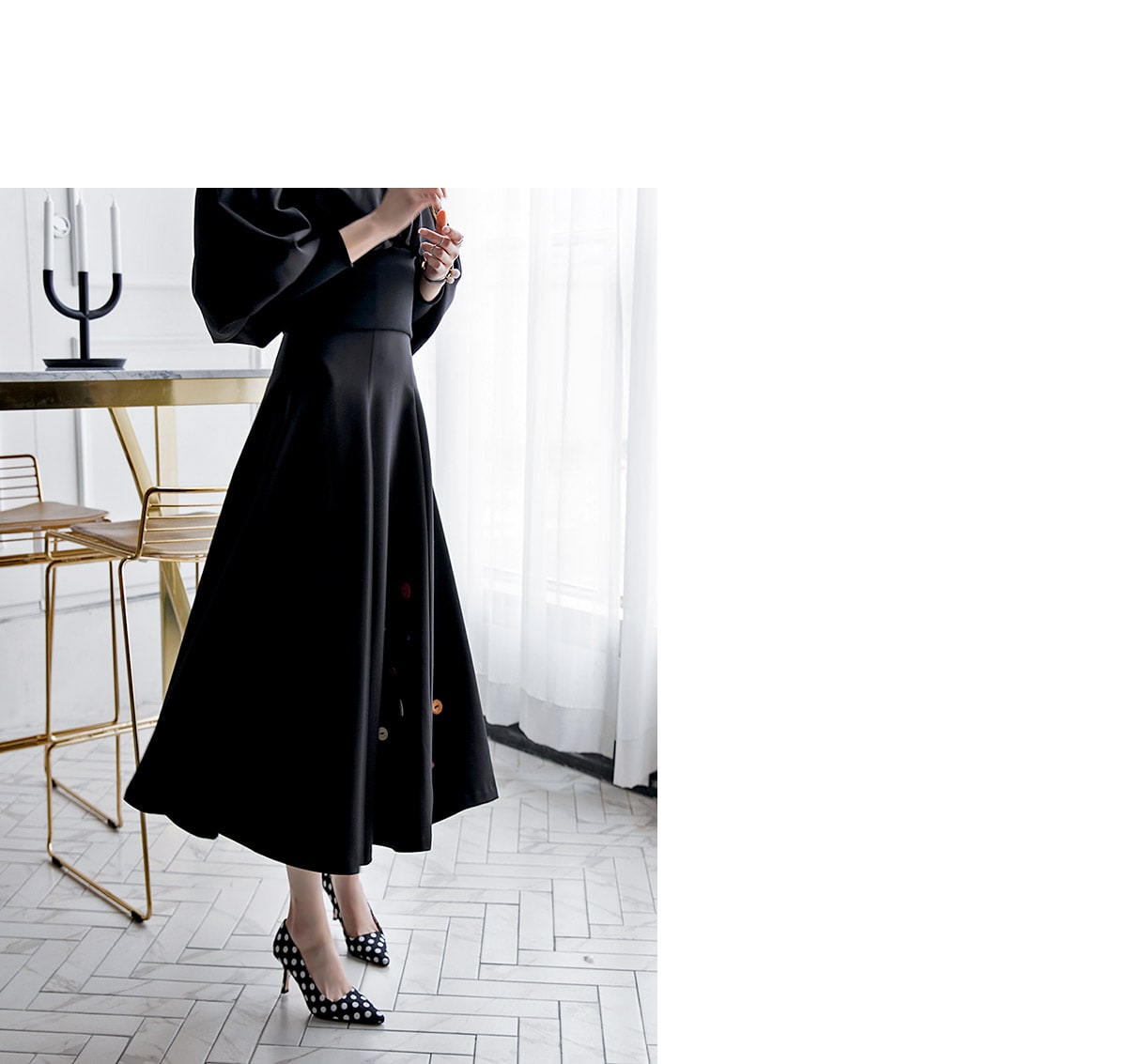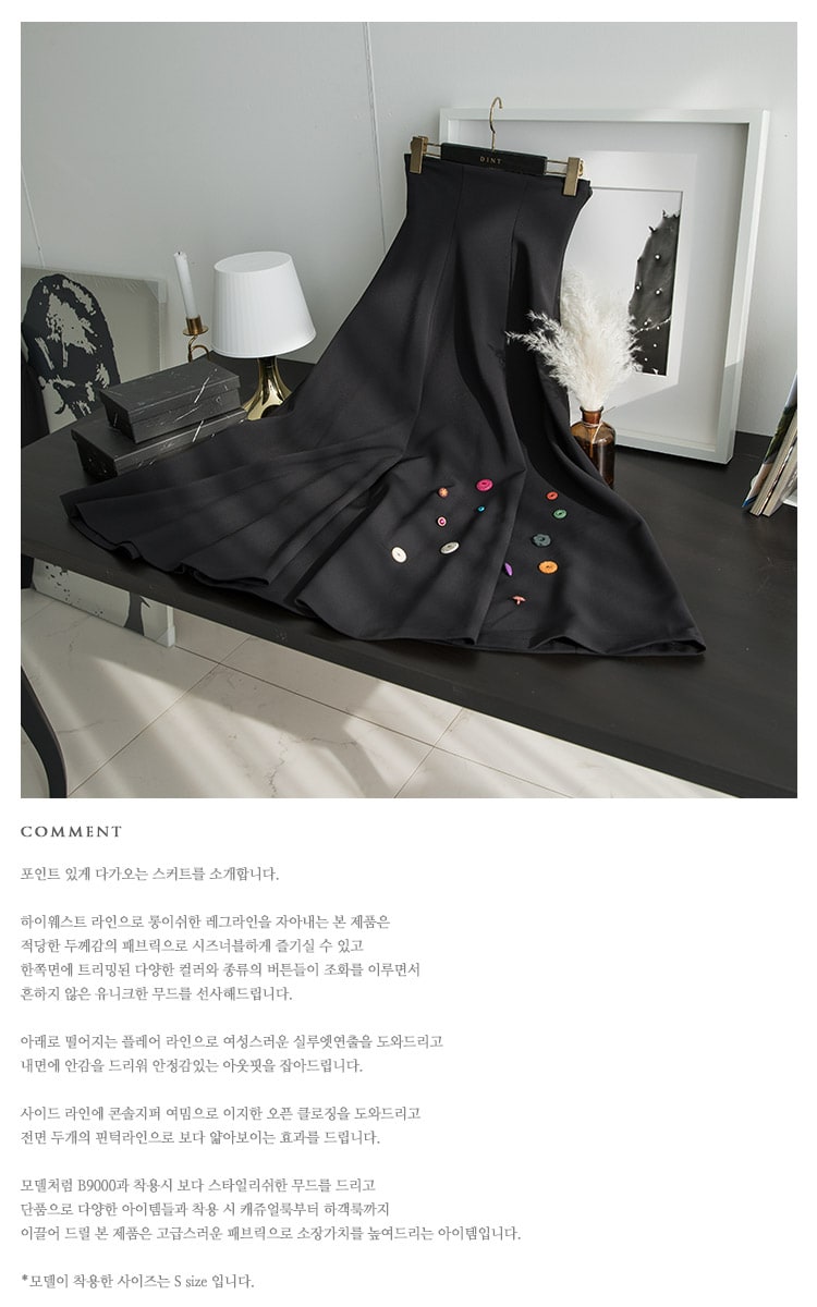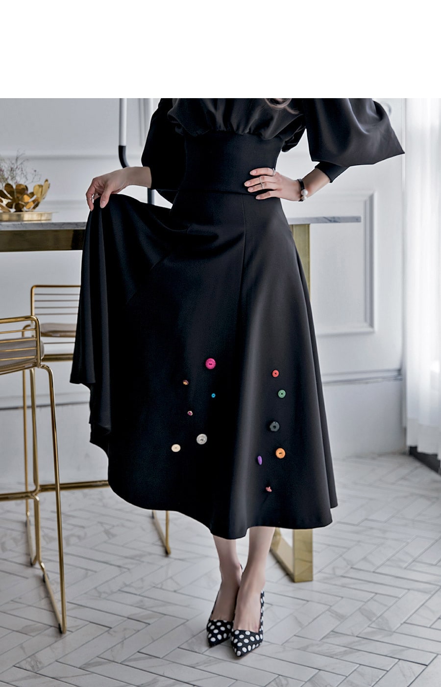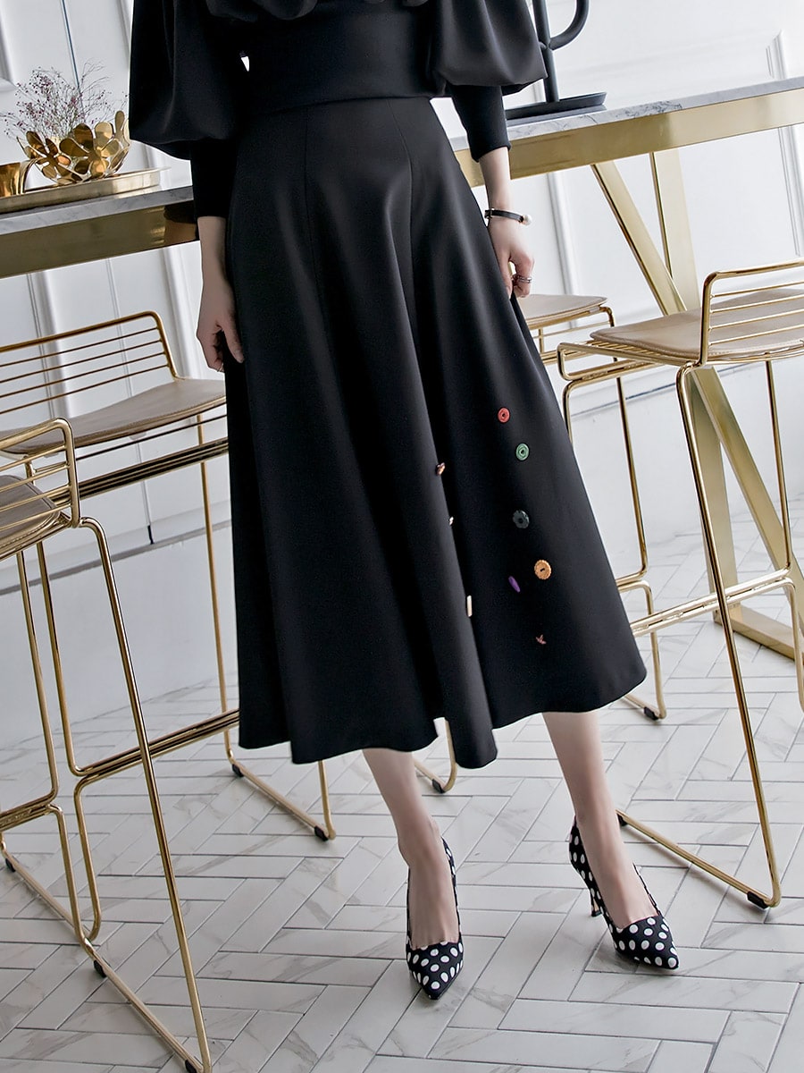 SK9000 르에 컬러 플레어 롱 스커트 Black