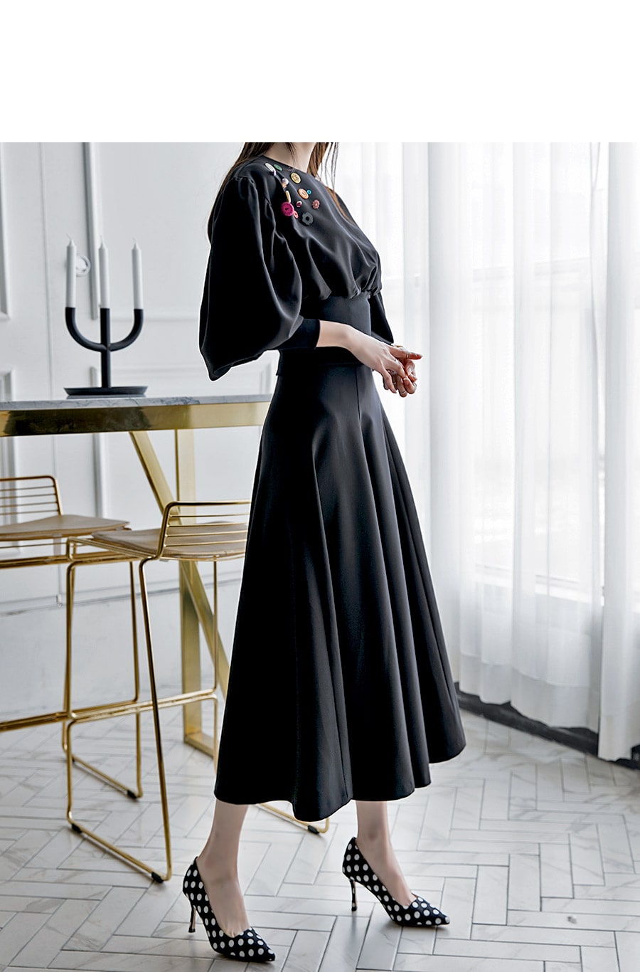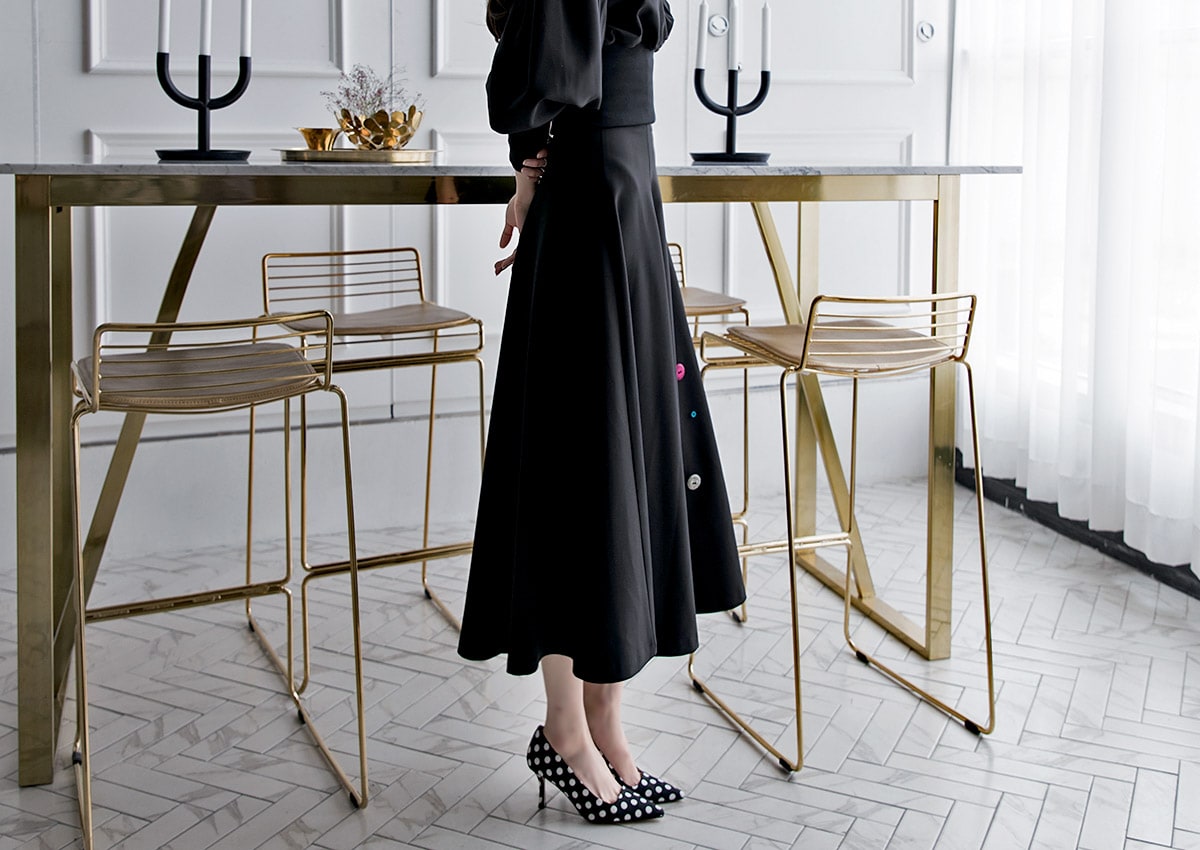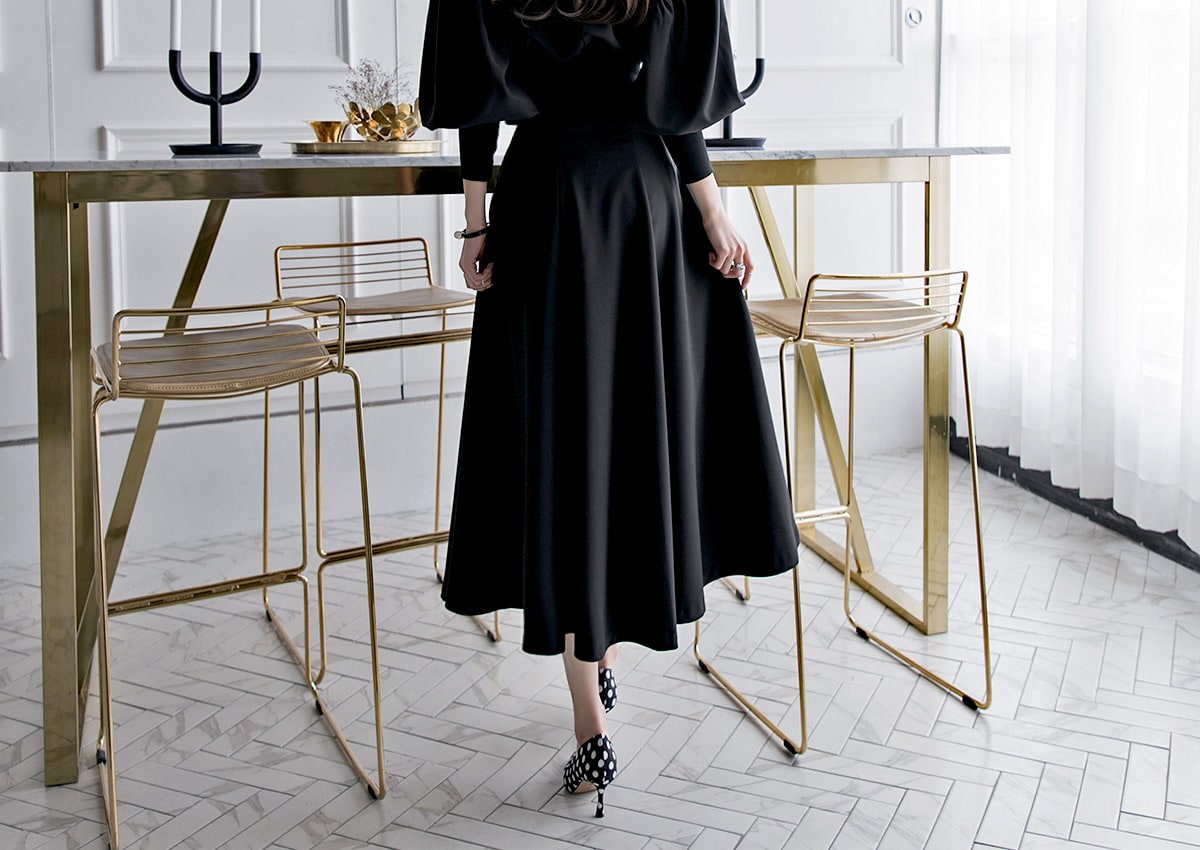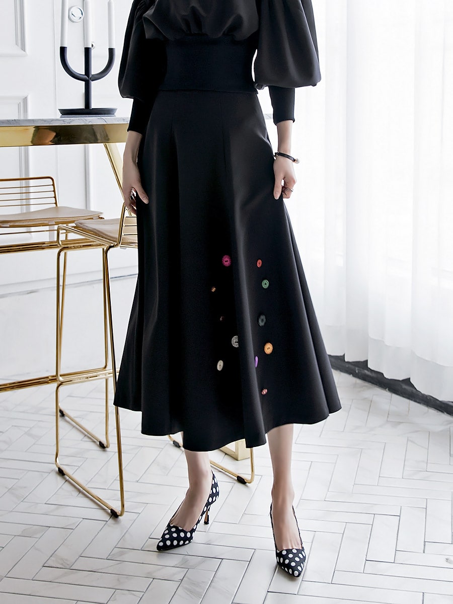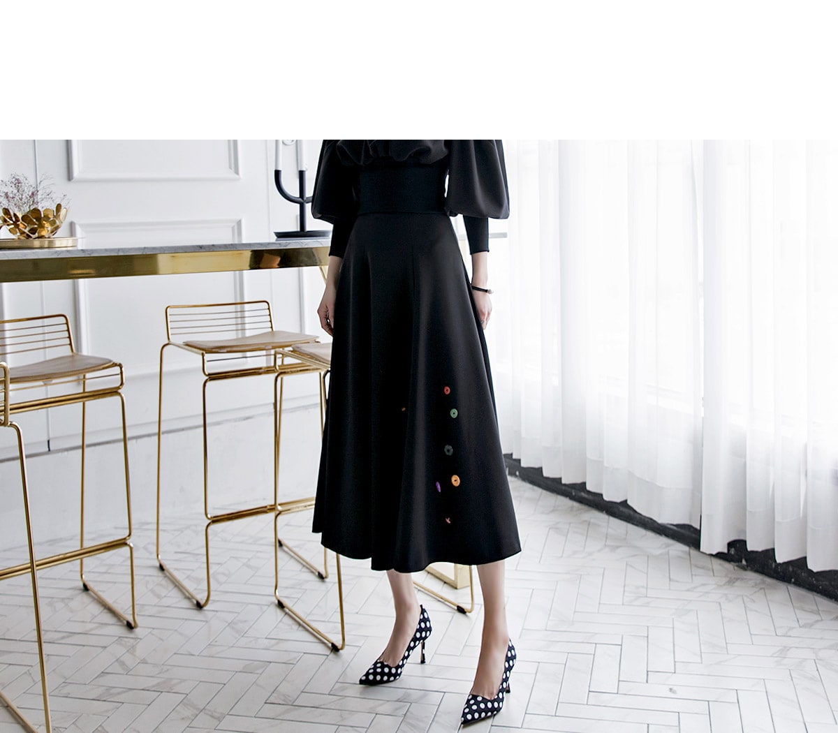 SK9000 르에 컬러 플레어 롱 스커트 Black