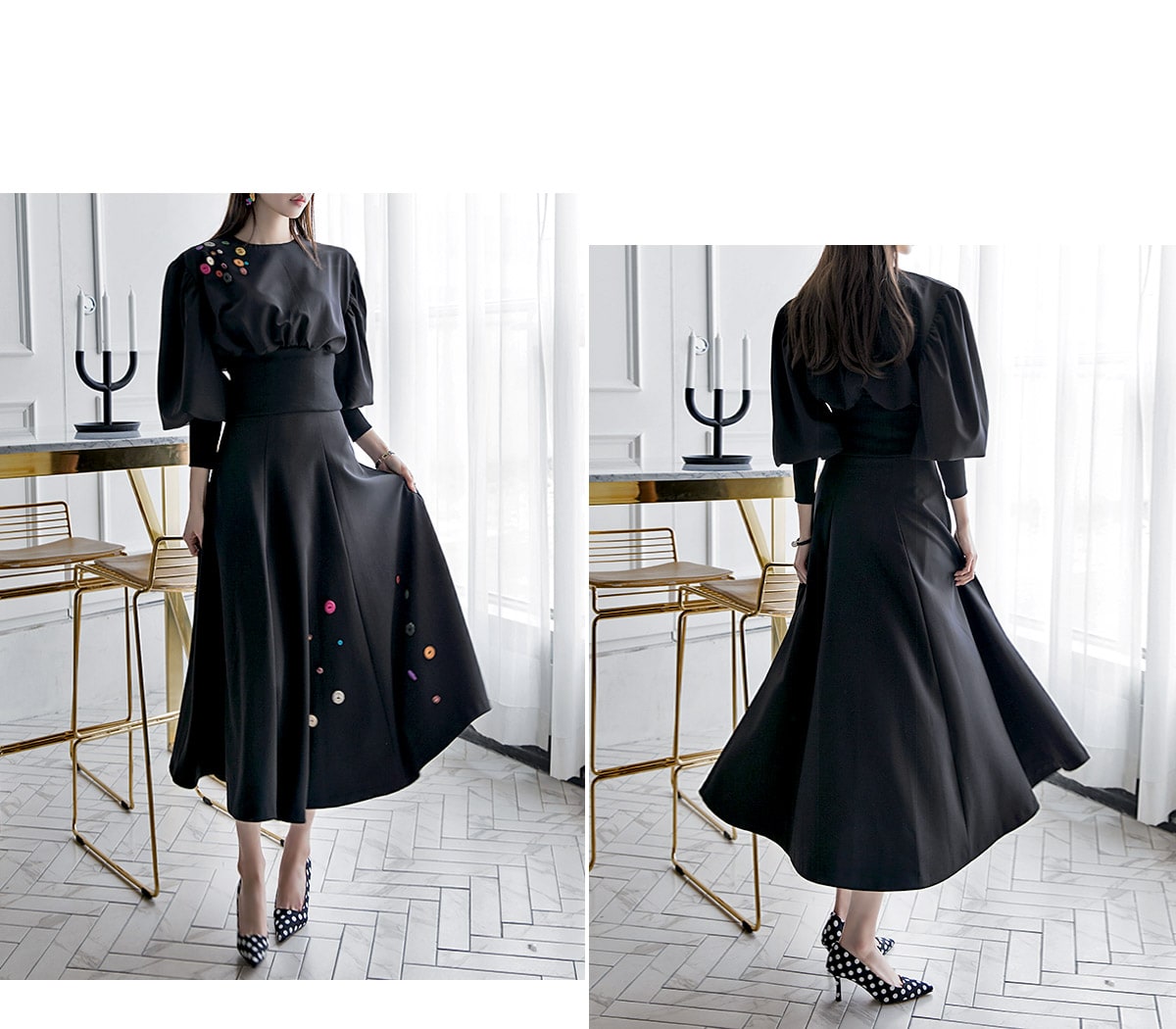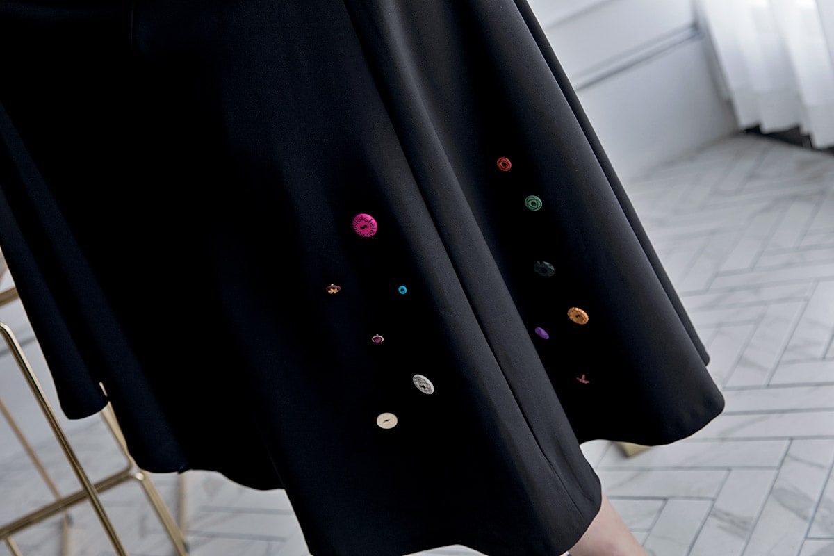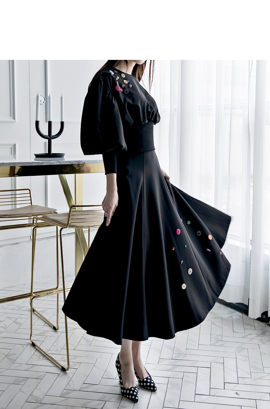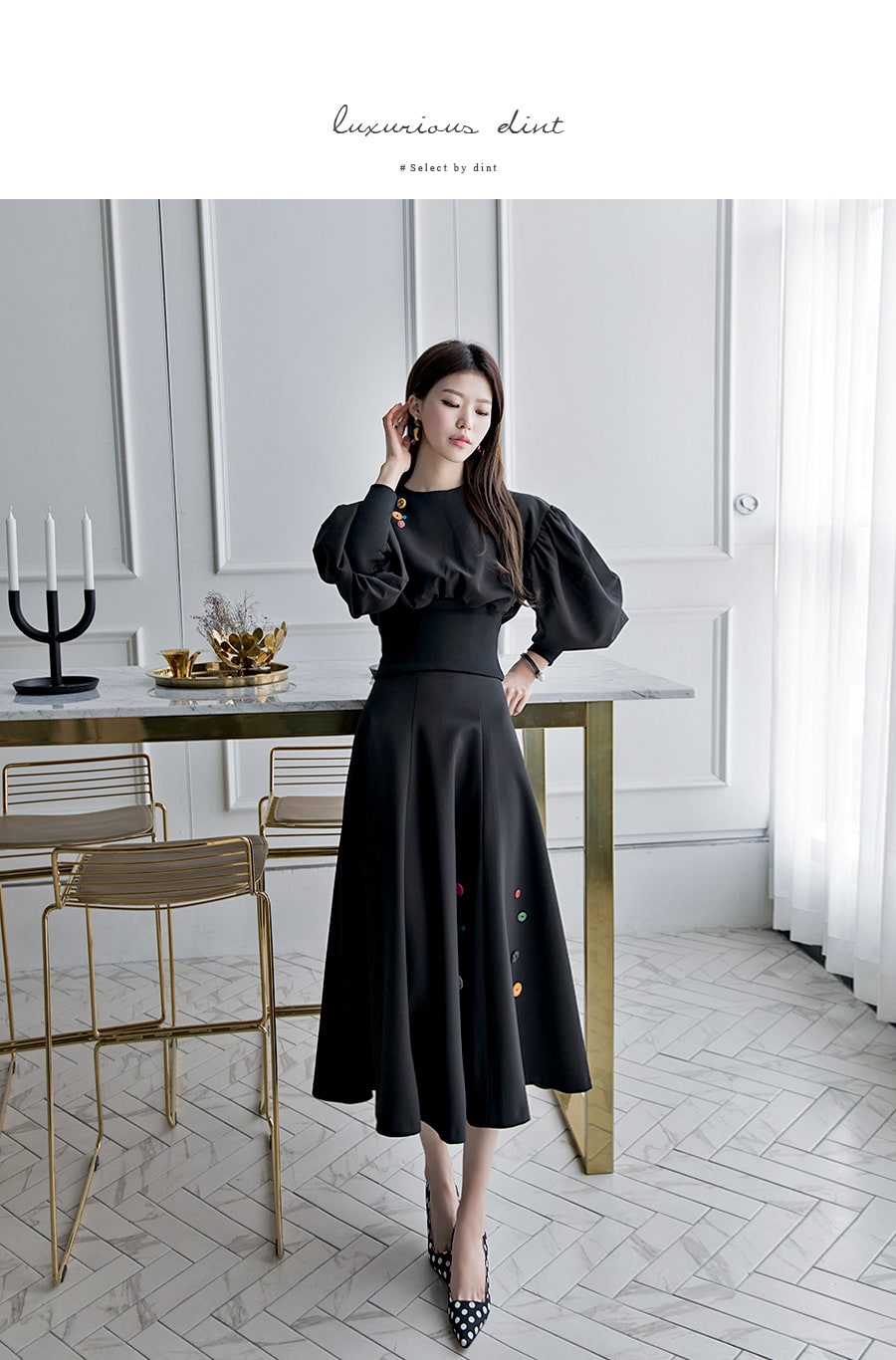 SK9000 르에 컬러 플레어 롱 스커트 Black