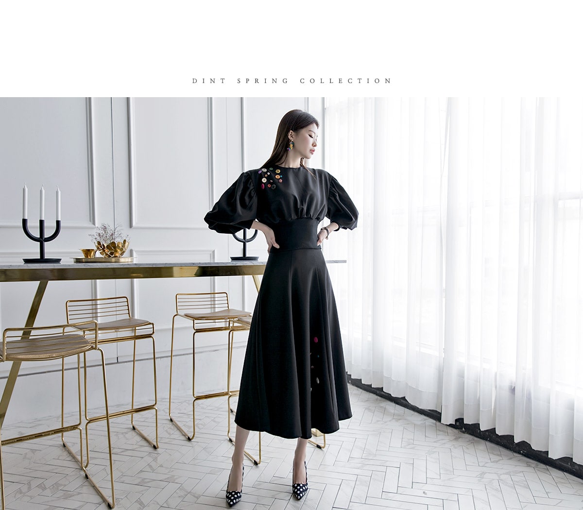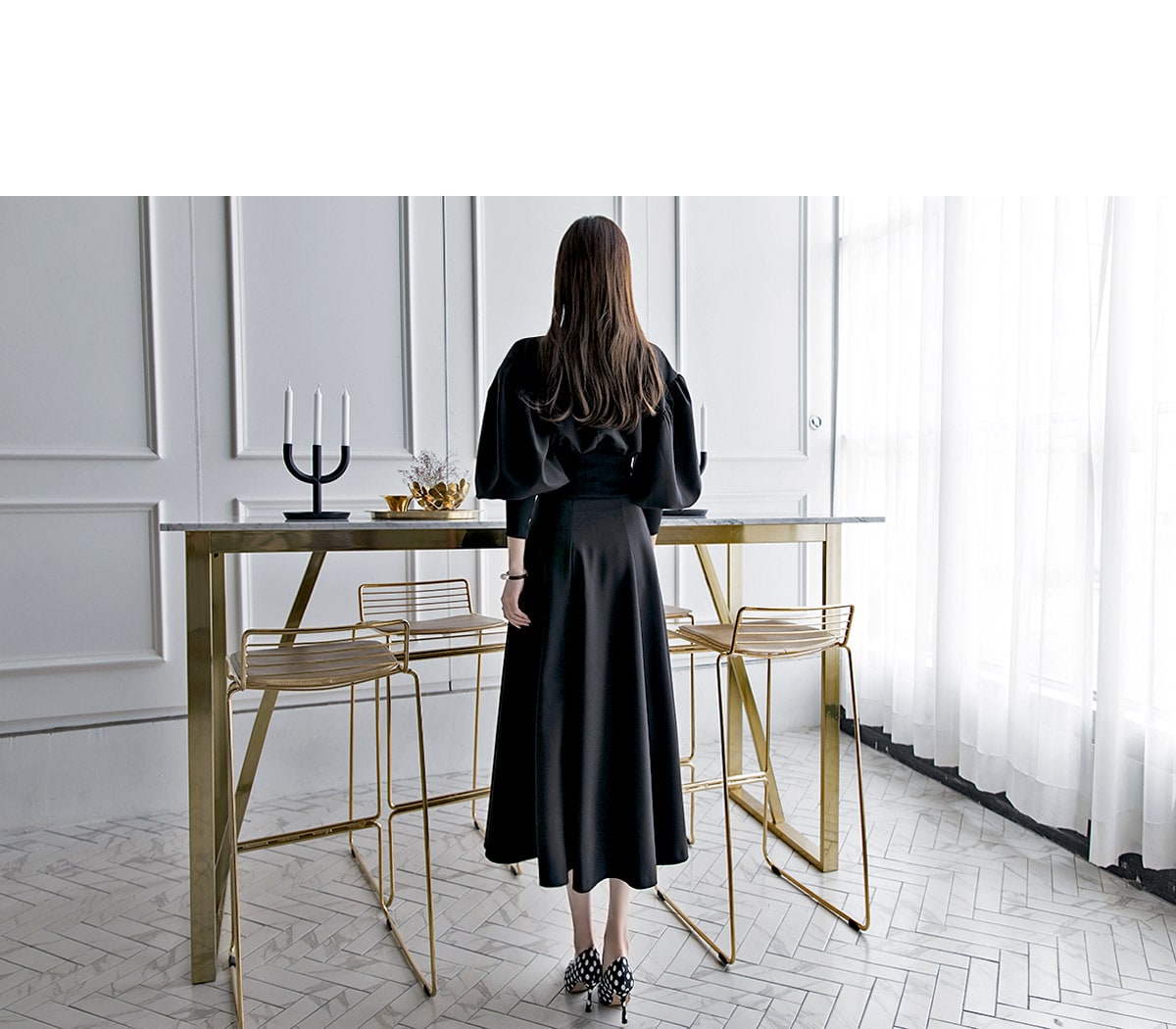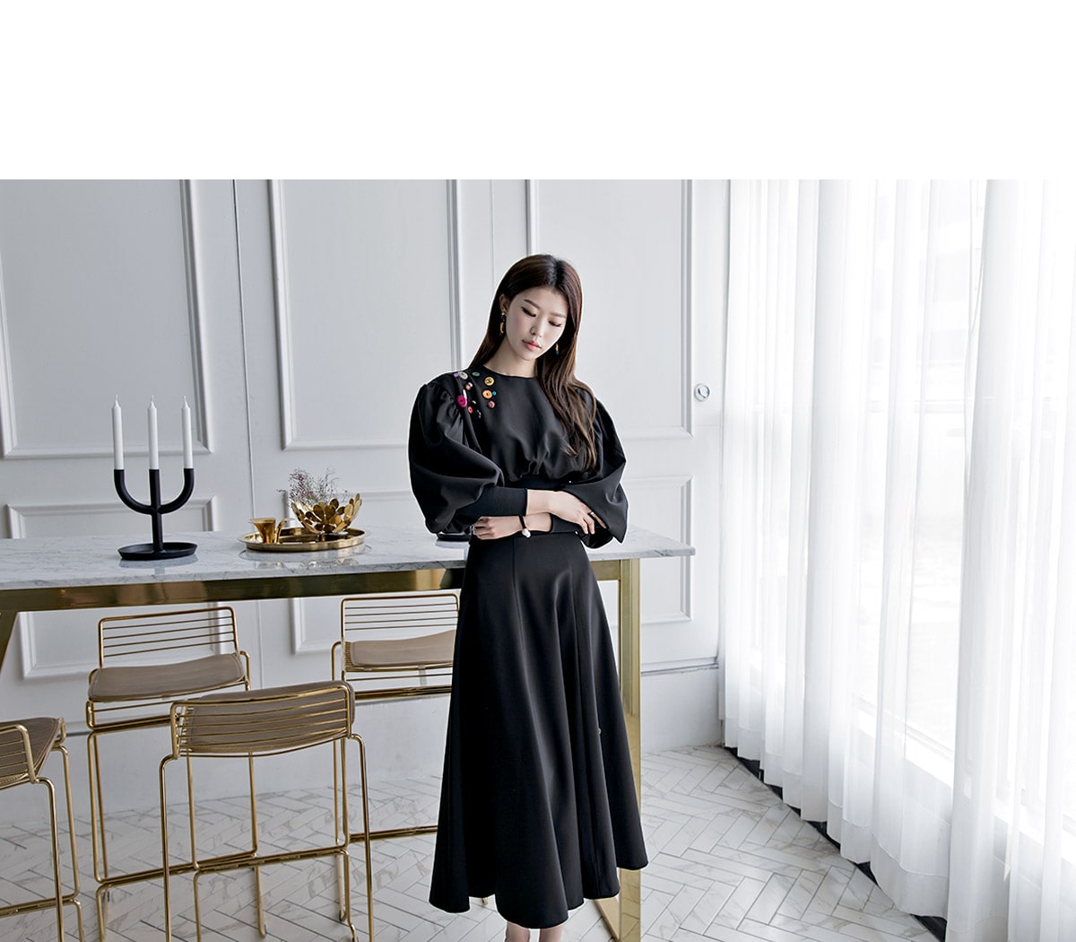 B9000 르에 컬러 트리밍 벌룬 블라우스 Black