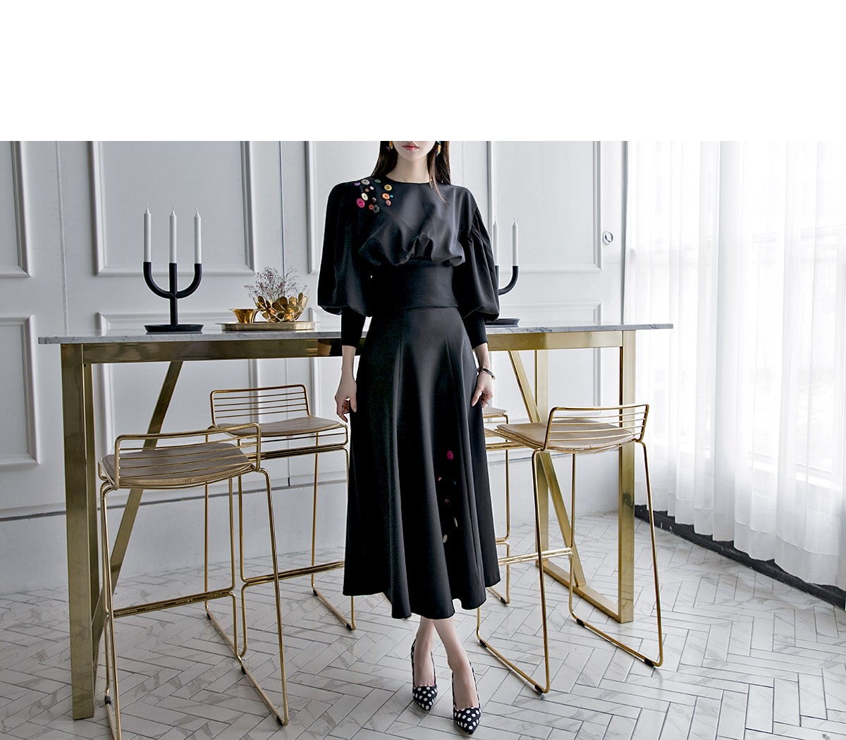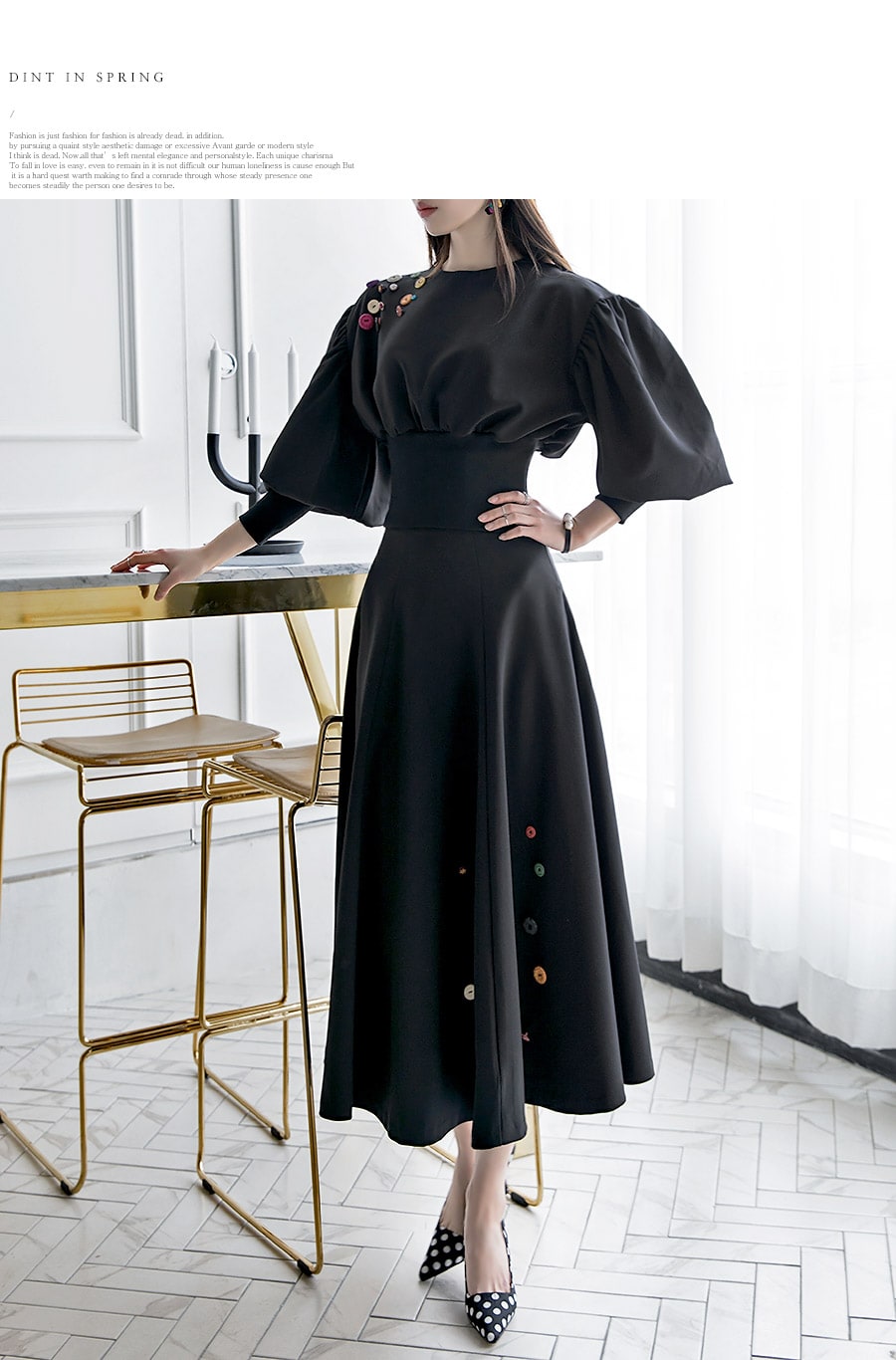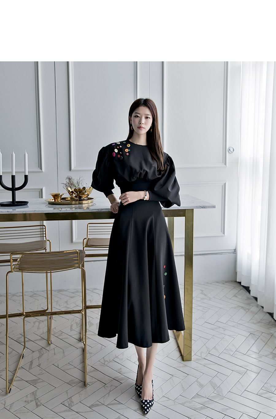 B9000 르에 컬러 트리밍 벌룬 블라우스 Black