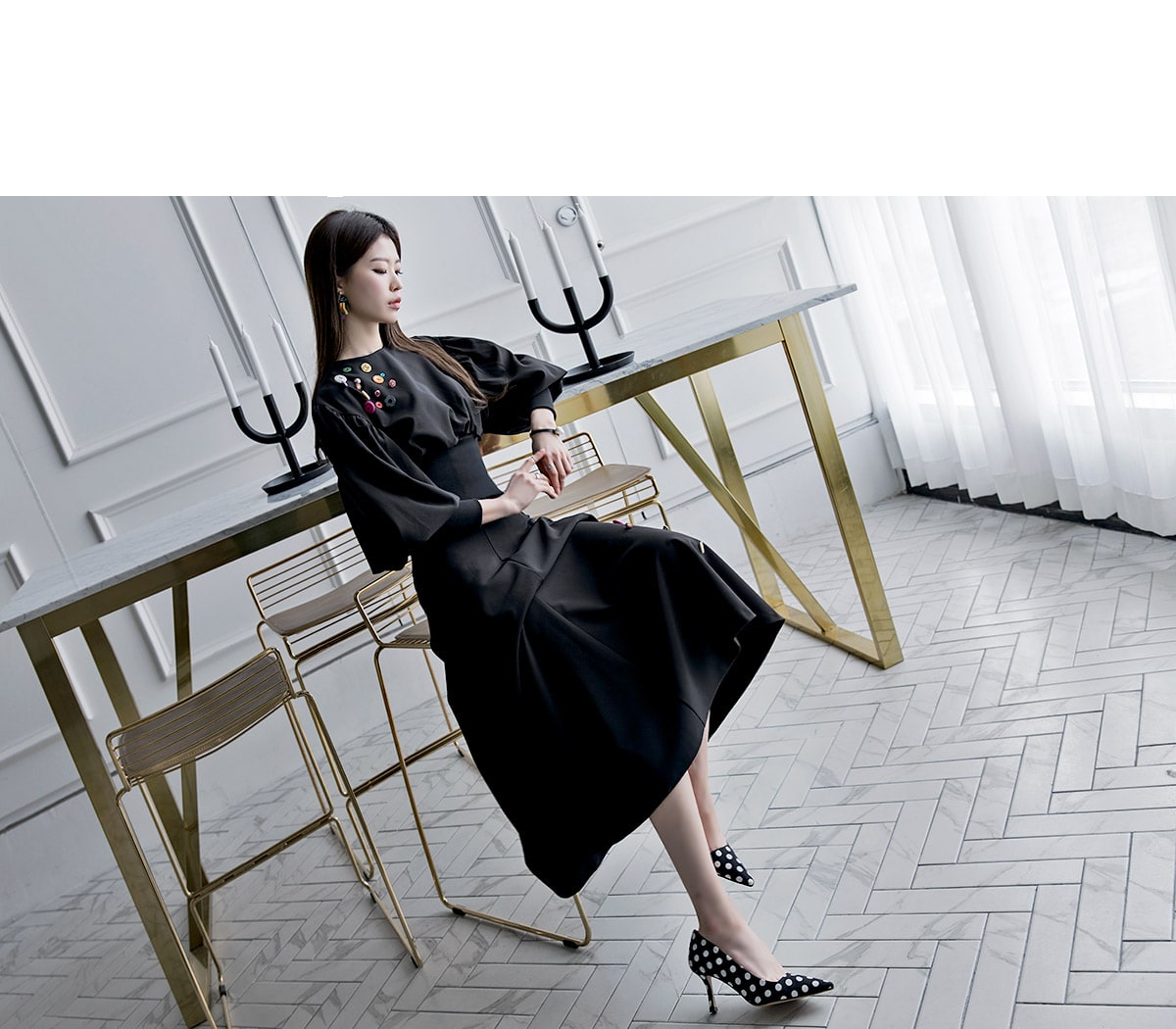 AR-2031 레트로 도트 스틸레토 힐 Black dot