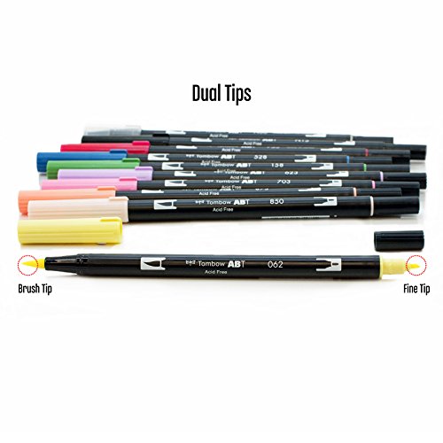 Set of 9 colors and 1 blender pen, with flexible brush tip and fine tip in one marker
