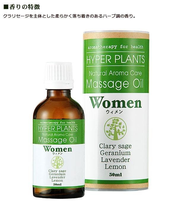 | ボディーケアのための天然エッセンシャルオイルをブレンドした手軽に使えるマッサージオイルです。「ウィメン」は、若々しい気分になりたい中年期の女性におすすめのブレンドです。サラっとした感触のオイルは、一日の疲れを癒すリラックスタイムへ。マッサージや入浴後のひざ・ひじ等のスキンケアにも。合成香料、着色料、保存料など一切不使用です。 |
