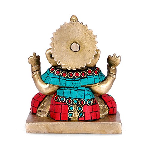 - Gajanan Ganesha Statue - Brass, Turquoise Work - Hindu Religious Ganesh Home Decor