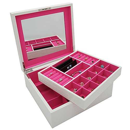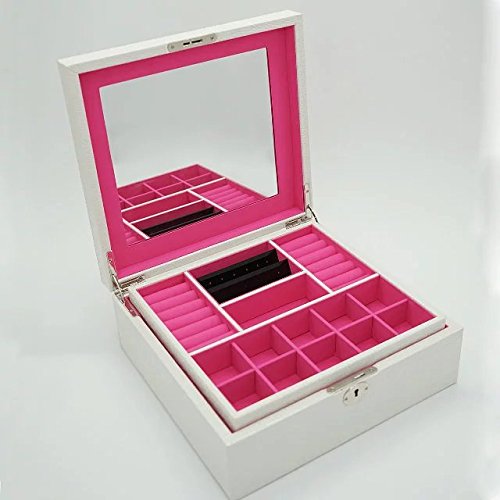 -. Title : 4Queens PU Jewelry Box Jewelry Case with Mirror
