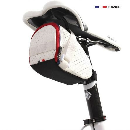 Beautiful bicycle seat bag with simple design, made with high quality artificial perforated leather and colour zippers
