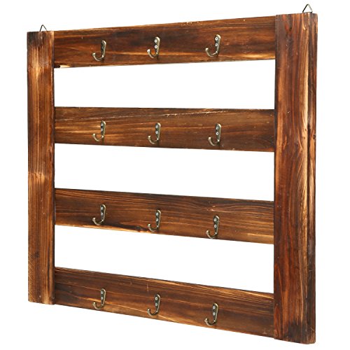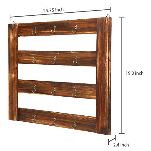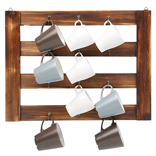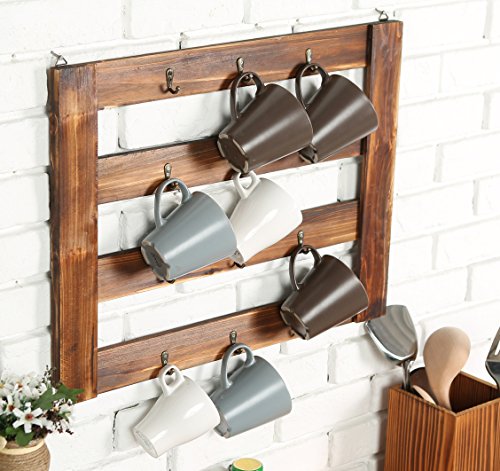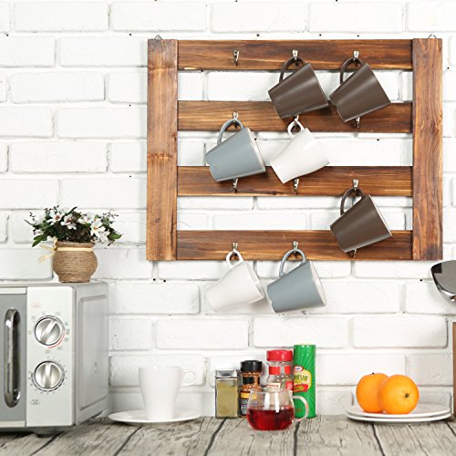 MyGift Rustic Wood Mug Rack, Wall-Mounted 12 Hook Kitchen Organizer, Brown