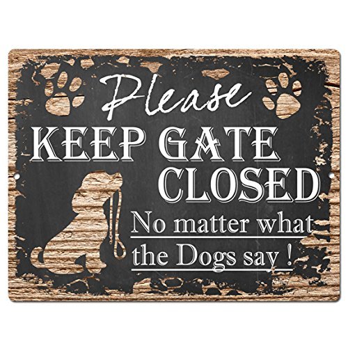 PLEASE KEEP GATE CLOSED No matter what the Dogs say Tin Chic Sign Vintage Retro Rustic 9"x 12" Metal Plate Store Home Decor Gift Ideas Dogs say