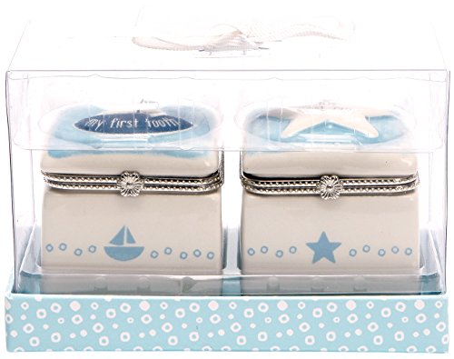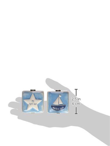 C.R. Gibson Ceramic First Tooth and Curl Keepsake Box, Sailboat and Star